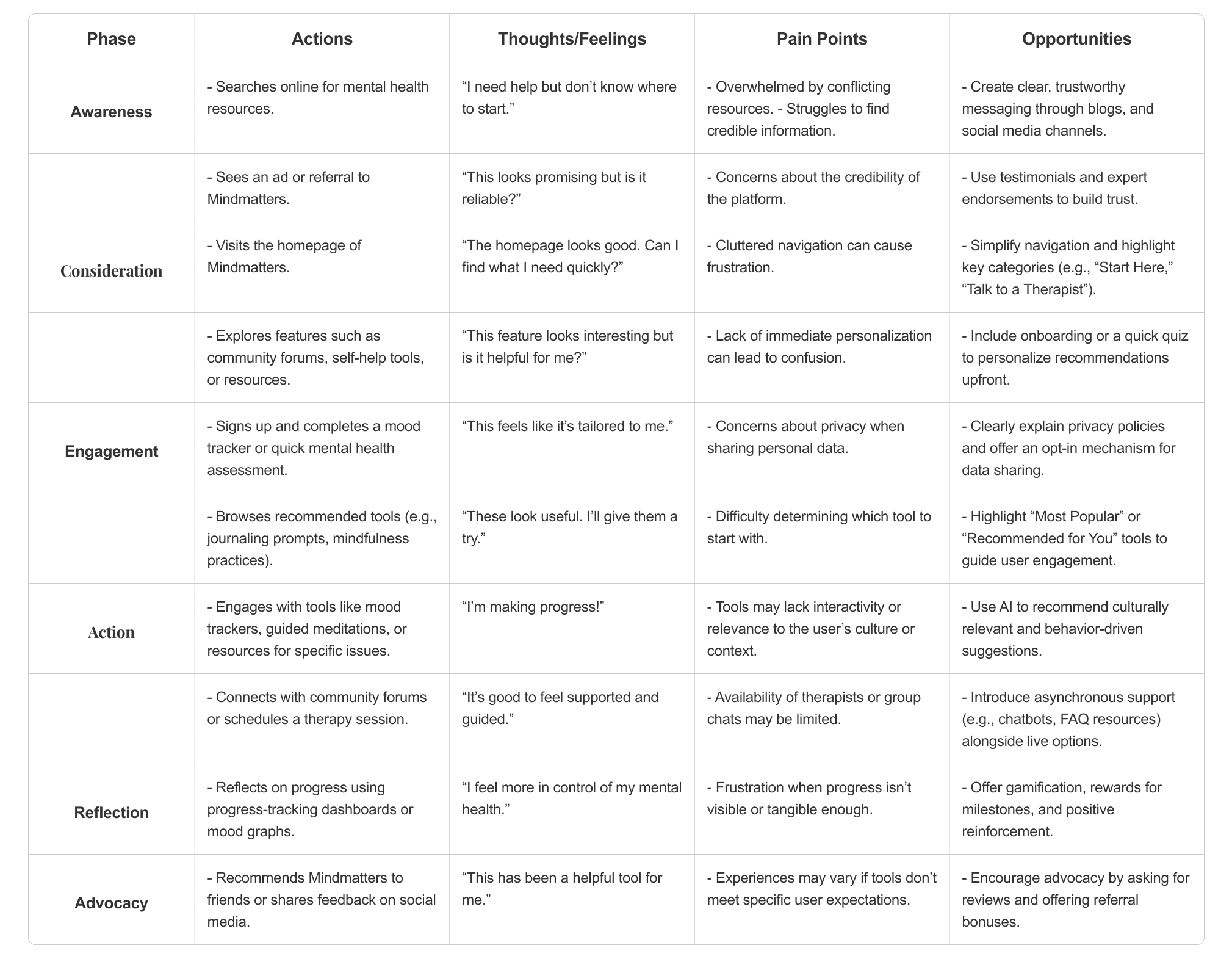Goal: Ensure a seamless and intuitive experience for users seeking mental health support.