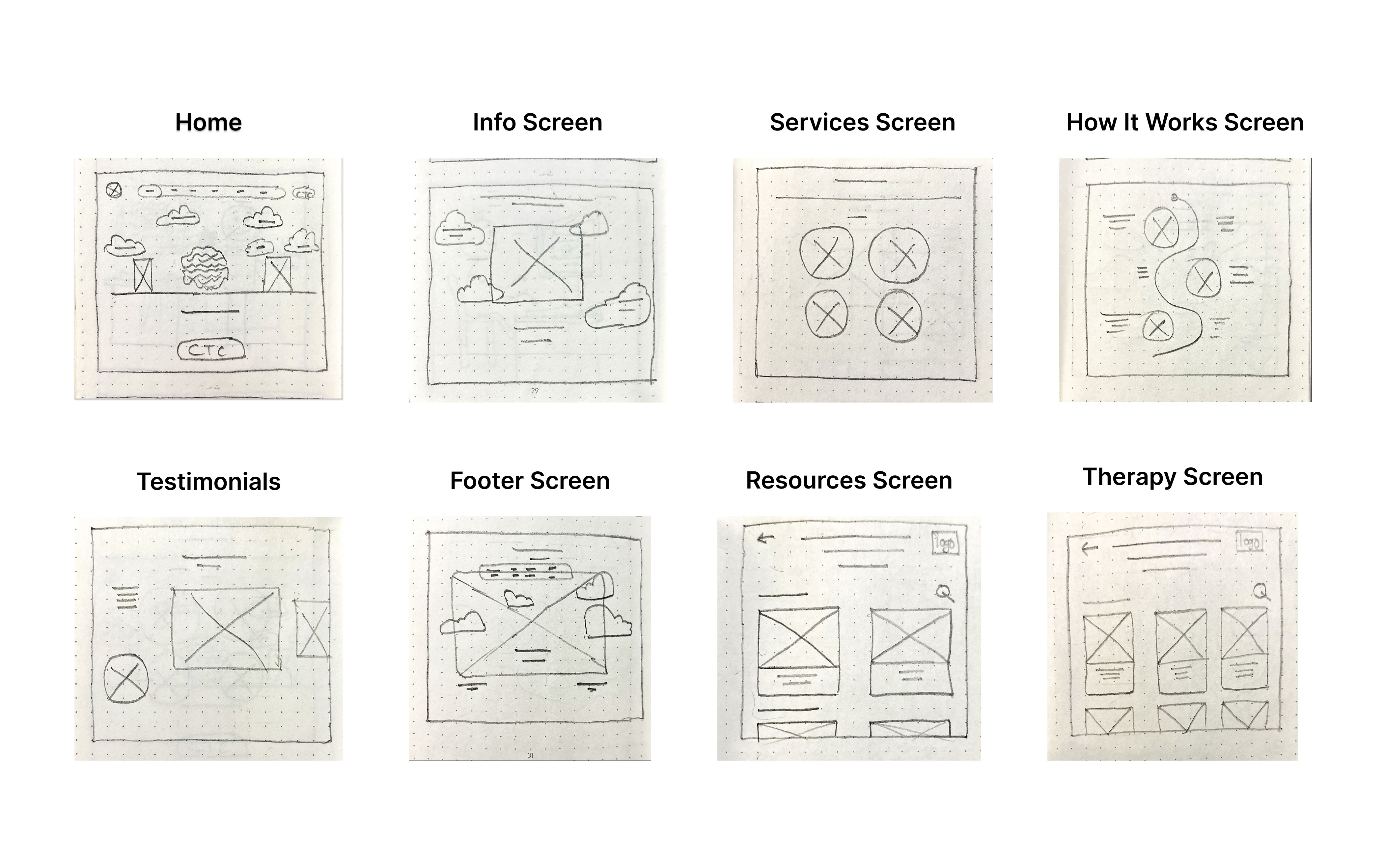 Lo-fi prototypes show how users will navigate through each screen of the app. This helps troubleshoot and make necessary corrections. Let’s take a look at how I went about creating a lo-fi prototype from the completed user flow.