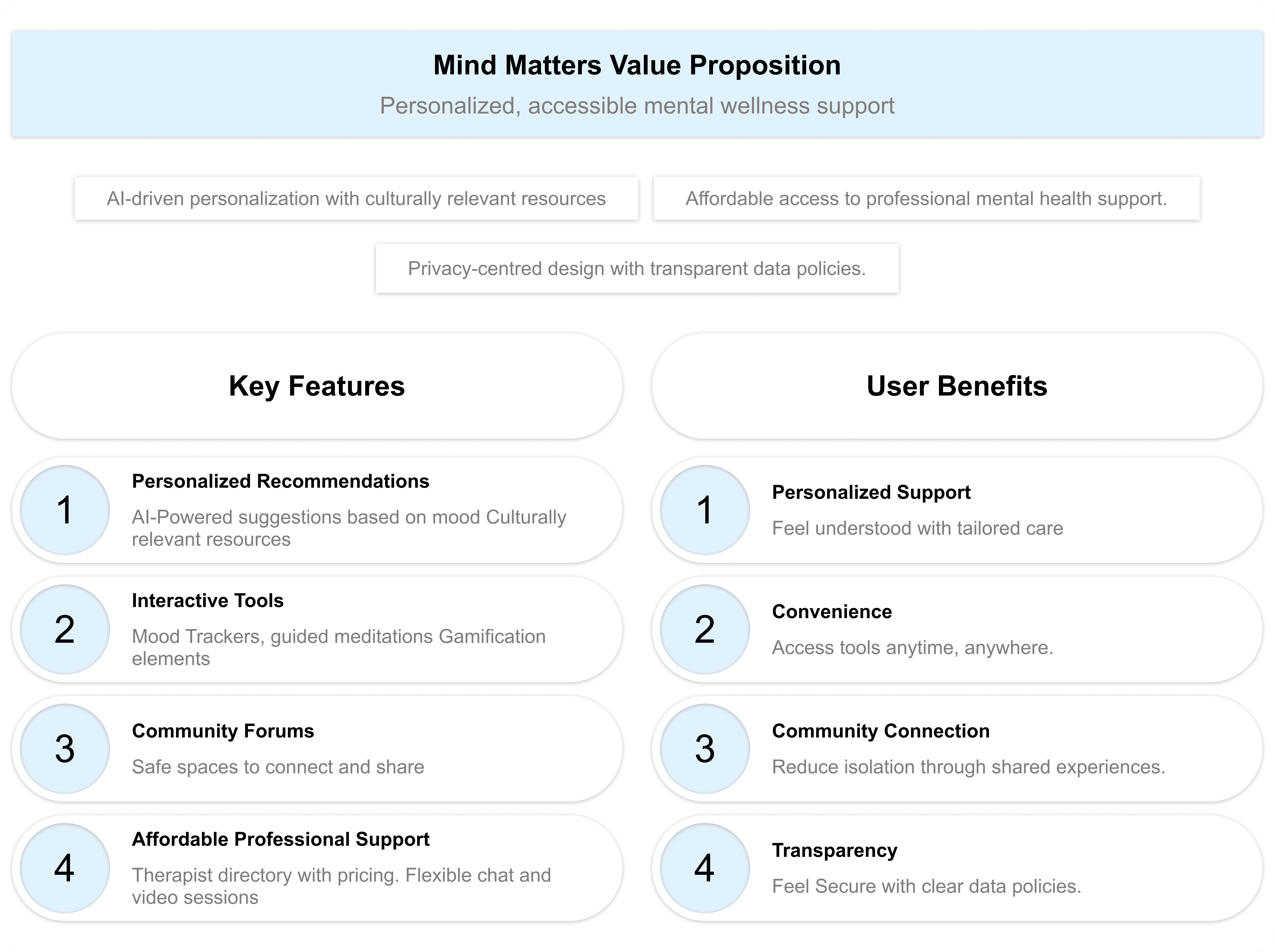 By studying their designs, marketing strategies, and user feedback, I identified key strengths, gaps, and opportunities. This competitive analysis provided valuable insights that helped shape MindMatters into a platform that not only meets but exceeds user expectations.