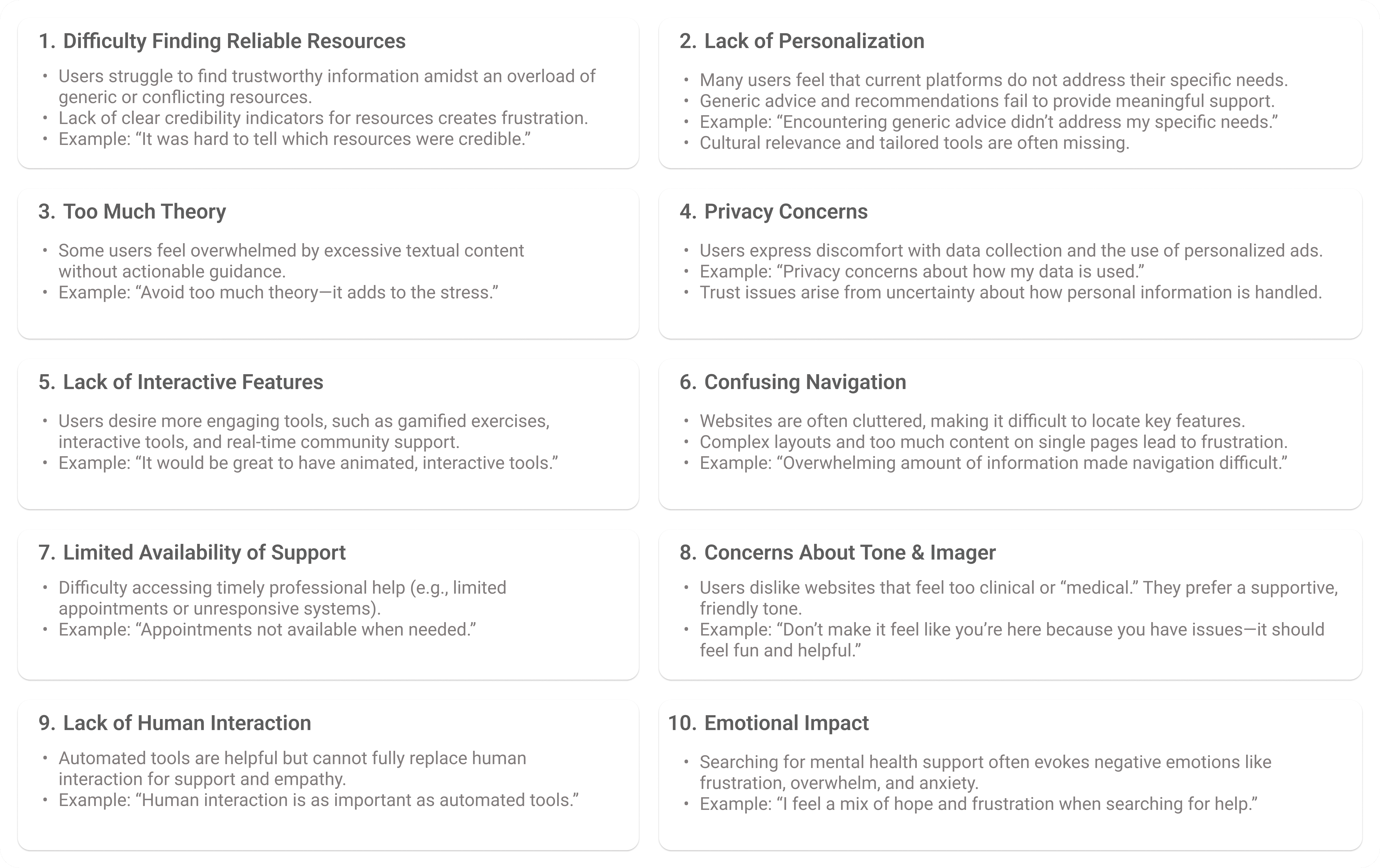 Emerging patterns allowed me to refine categories further and adjust insights accordingly.