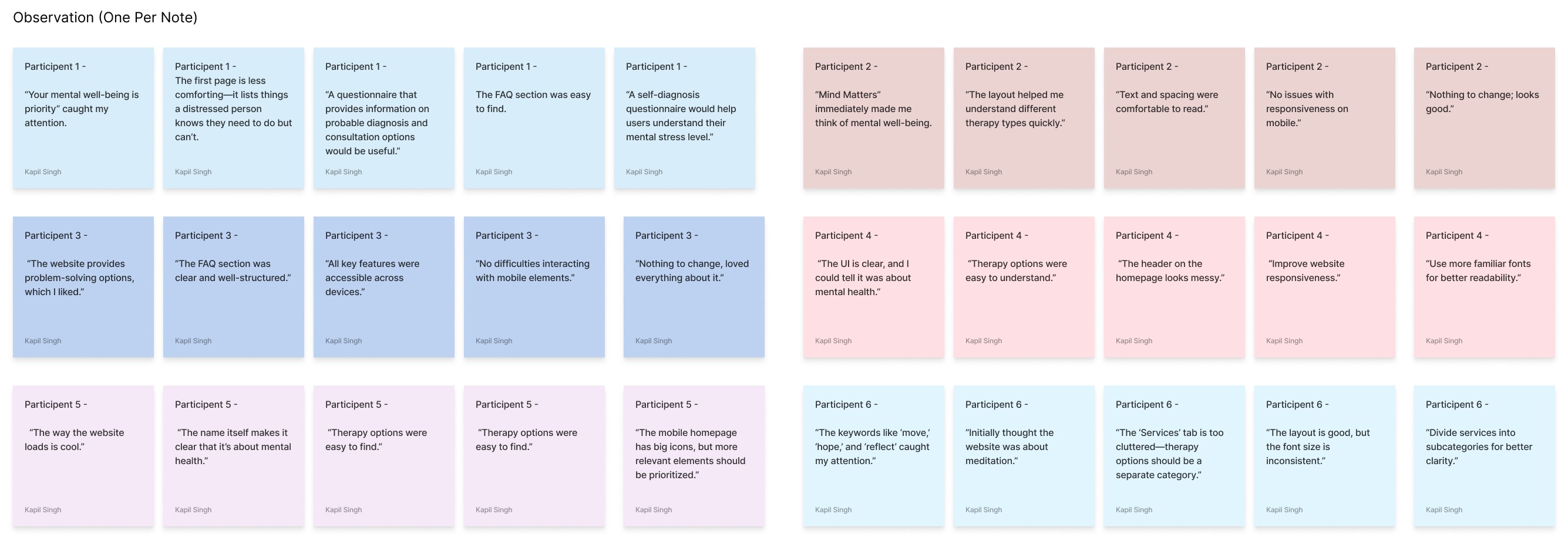 Each sticky note contained only one idea, observation, or direct quote for clarity.