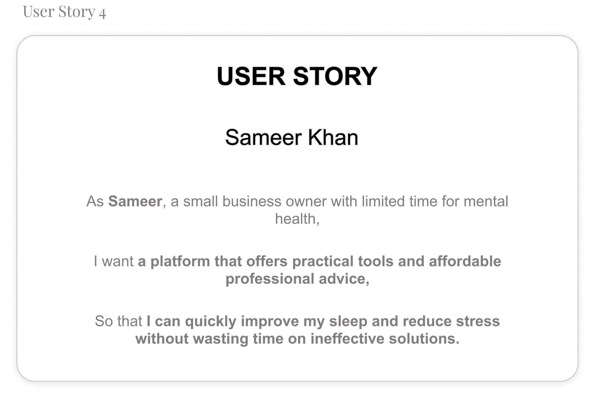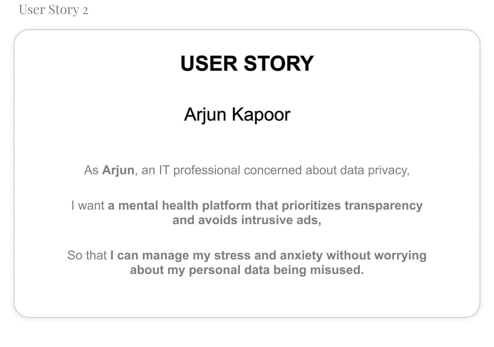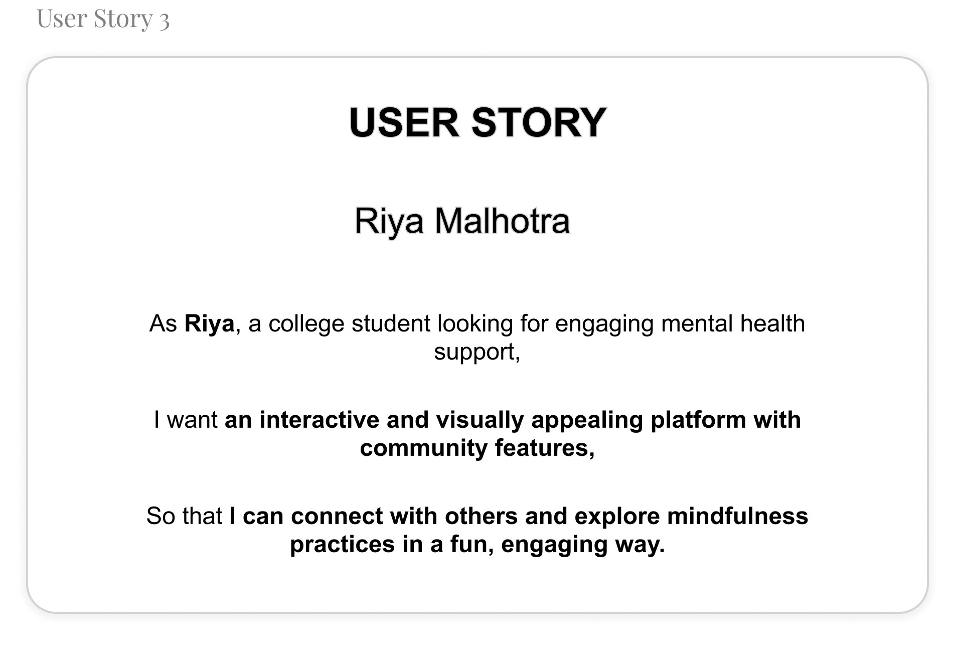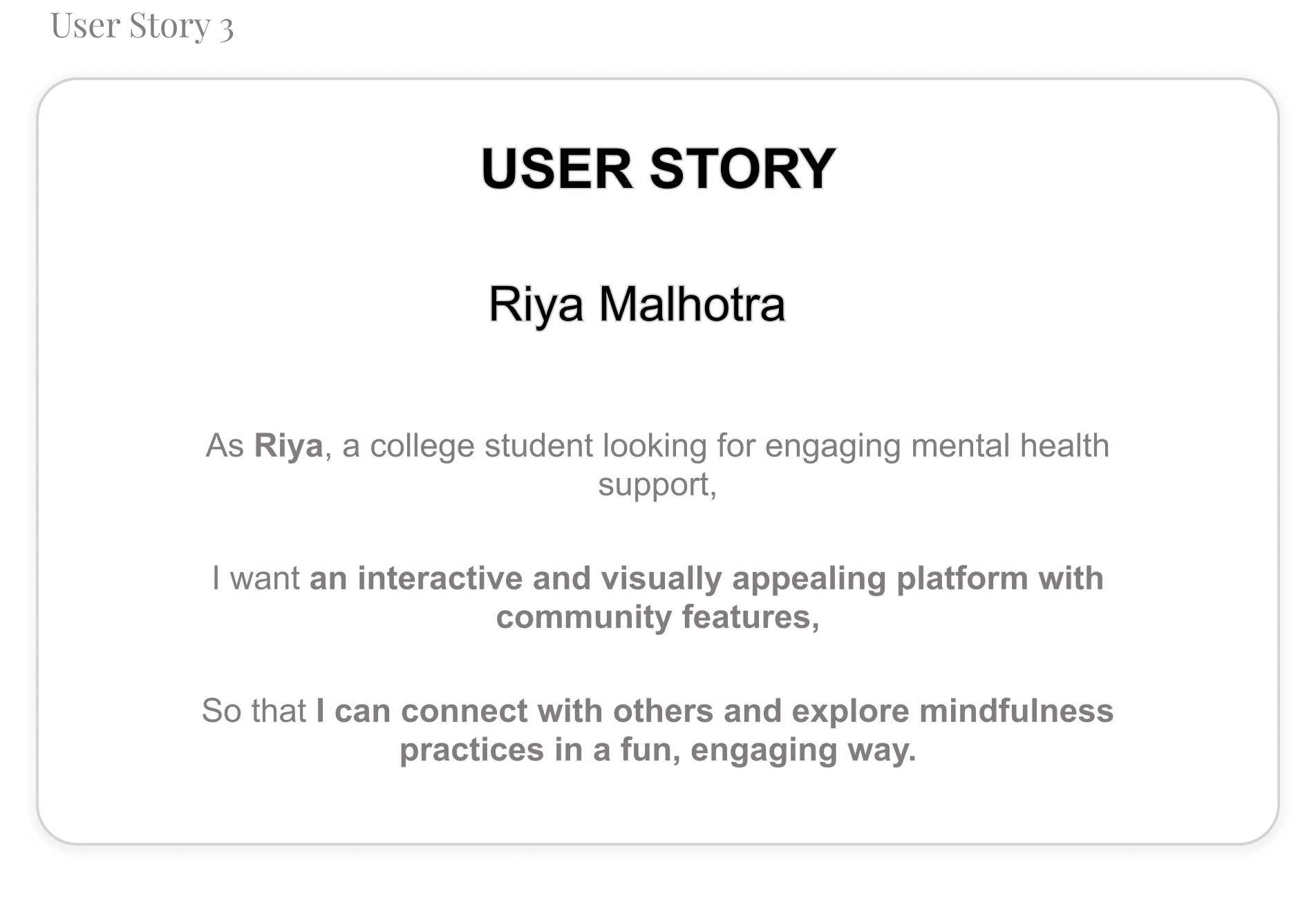 To better understand my users, I created user stories that reflect their experiences with Mindmatters.