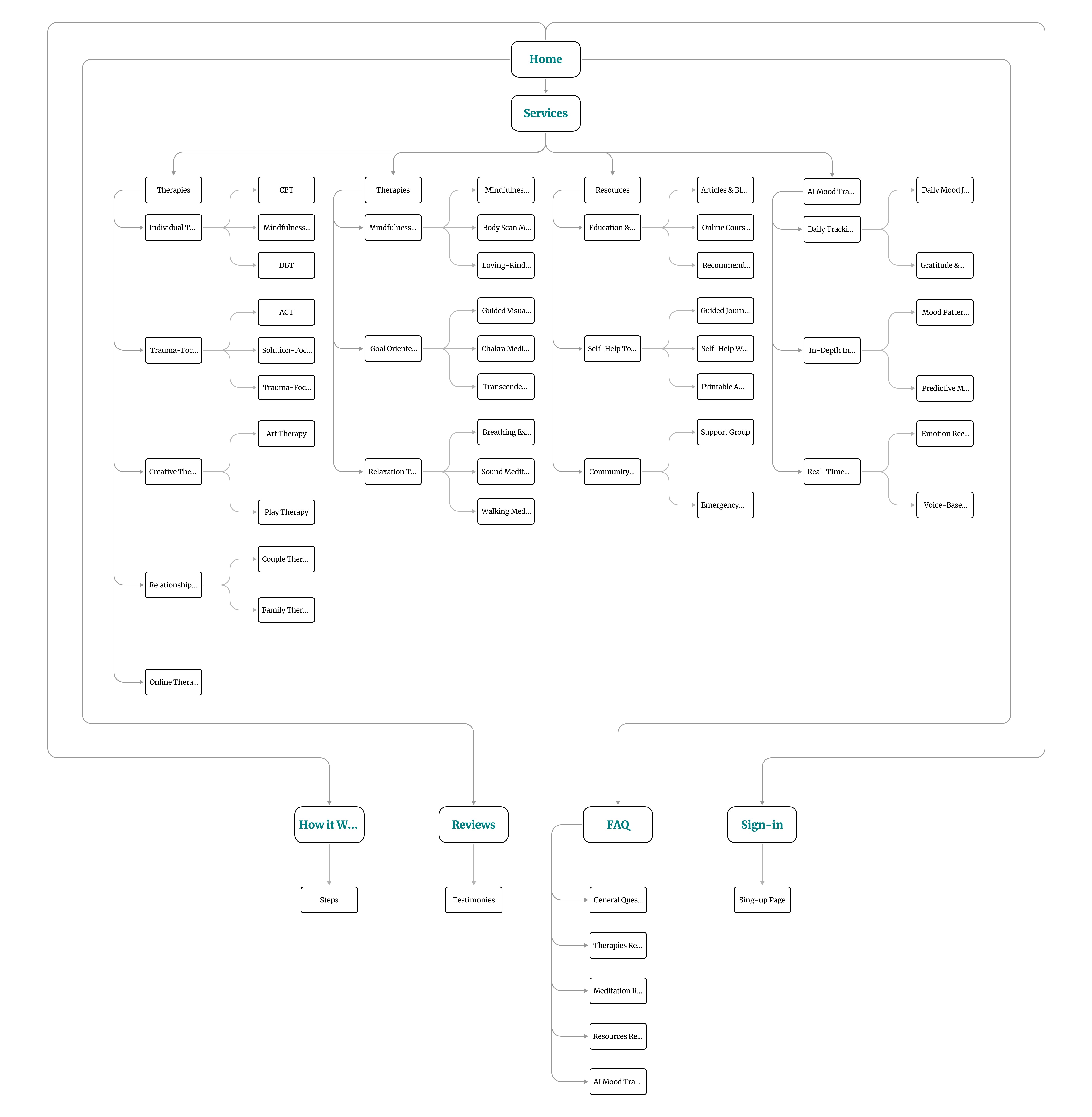 Organization: I emphasized how various elements, such as therapy options, mindfulness practices, and AI-powered mood tracking tools, are interrelated. This logical structure ensures users can easily navigate through the website and find what they’re looking for.