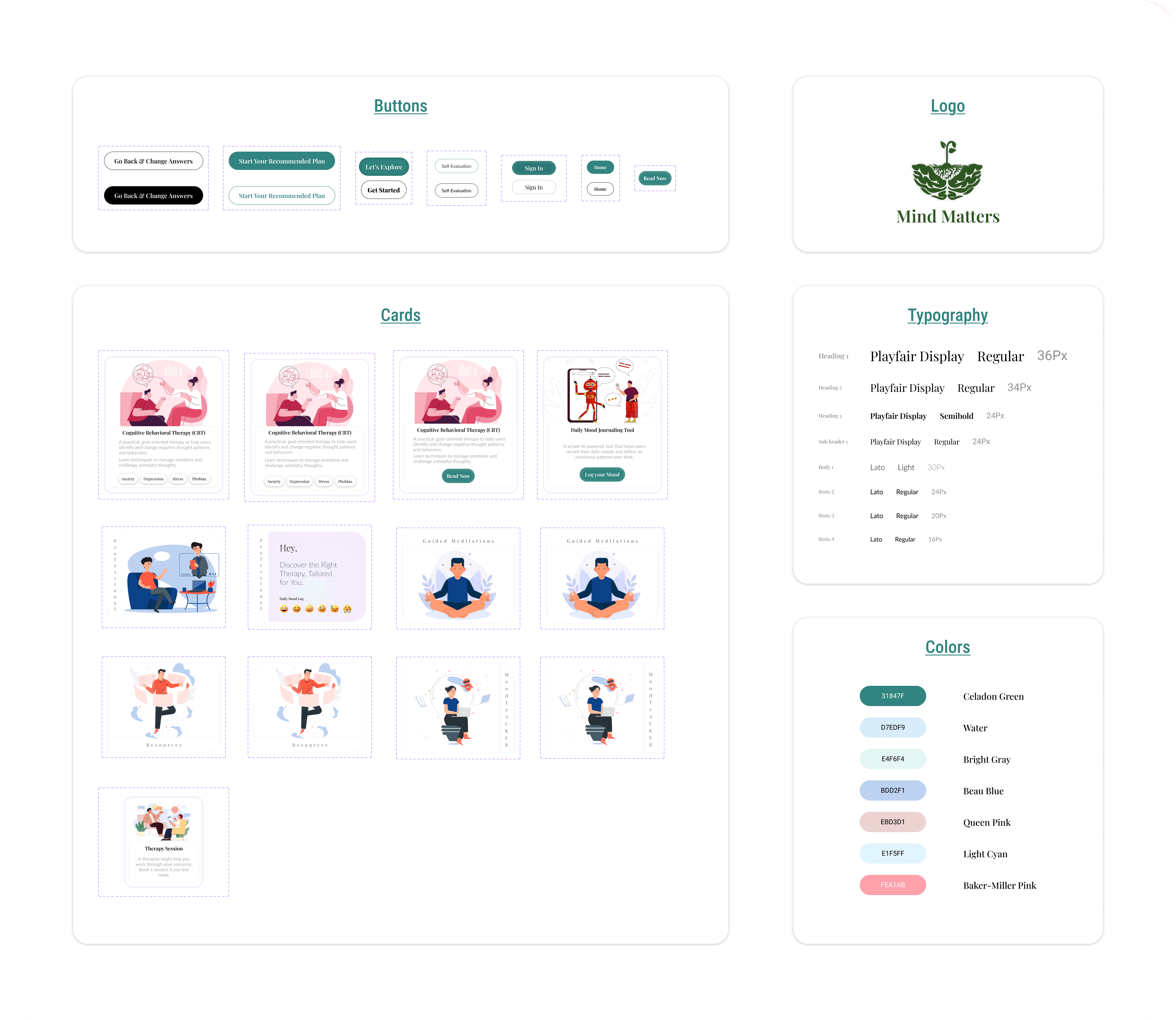 The thoughtful selection of these elements ensures a seamless, user-centric experience, making Mind Matters an inviting and effective mental health support platform.