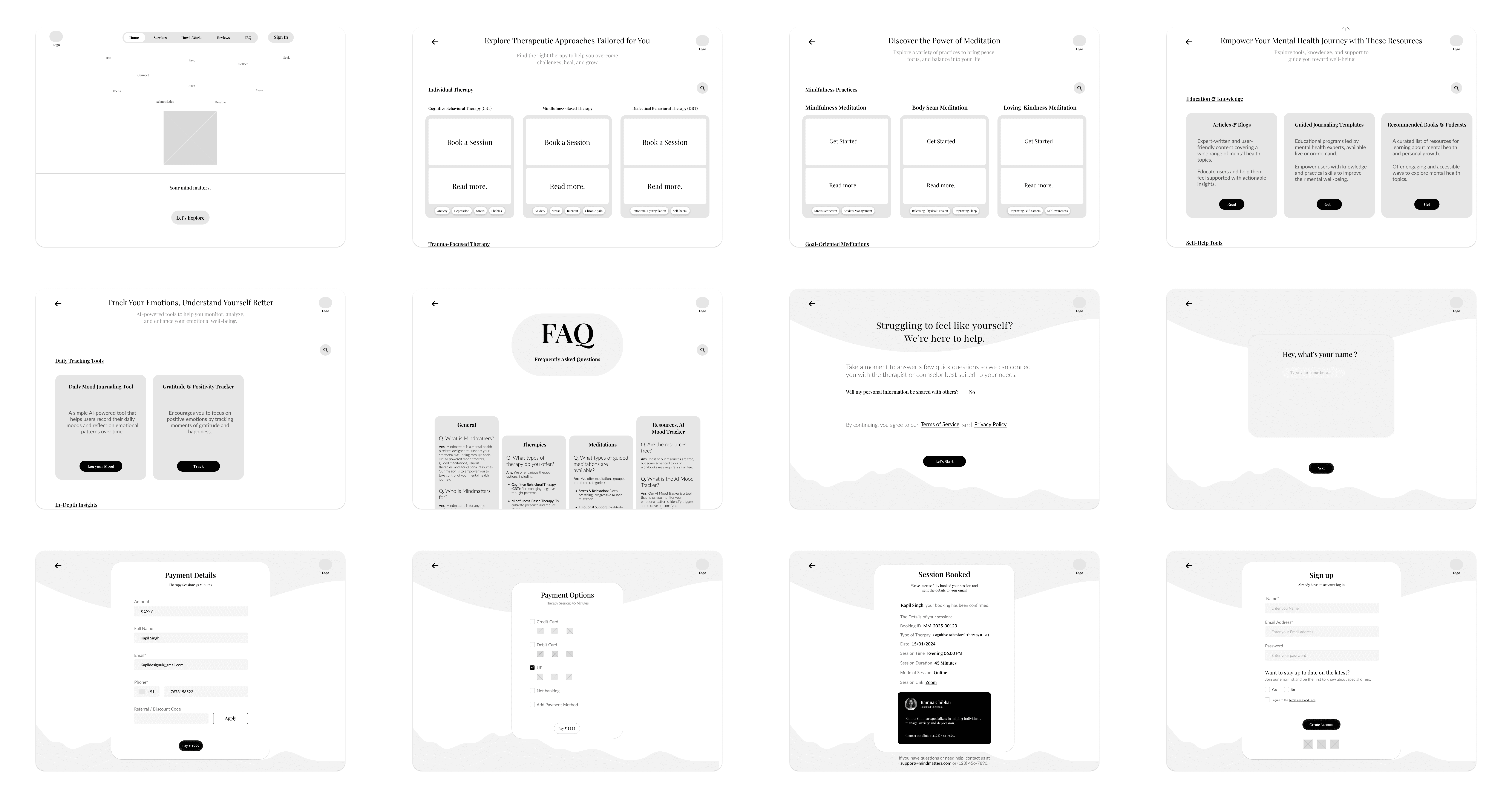 Refined Therapy Booking Process: Improved clarity in session selection, therapist profiles, and appointment confirmation.
